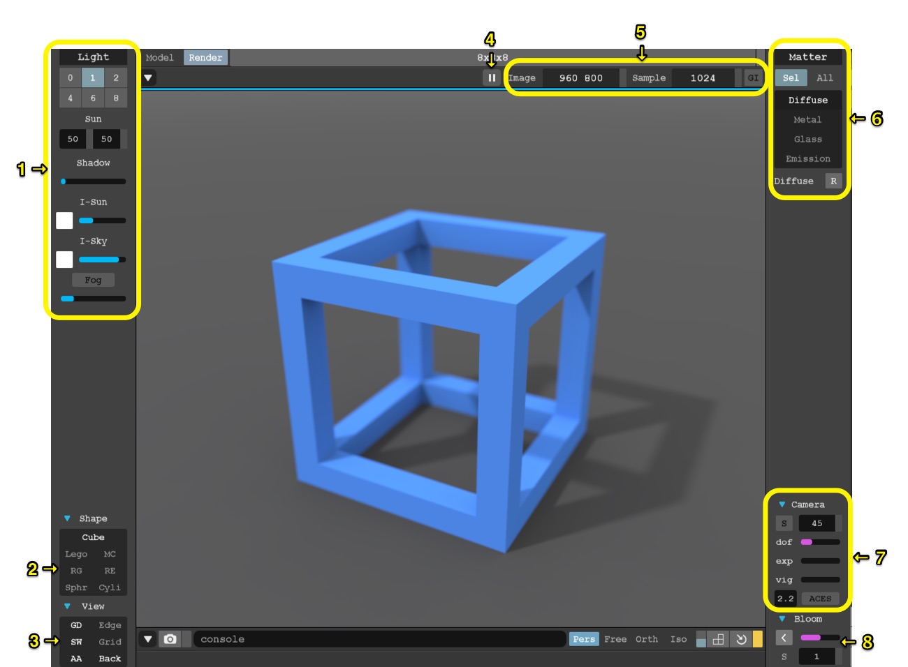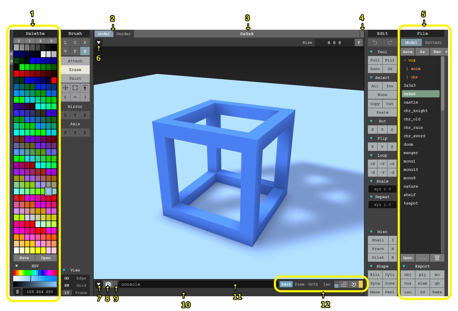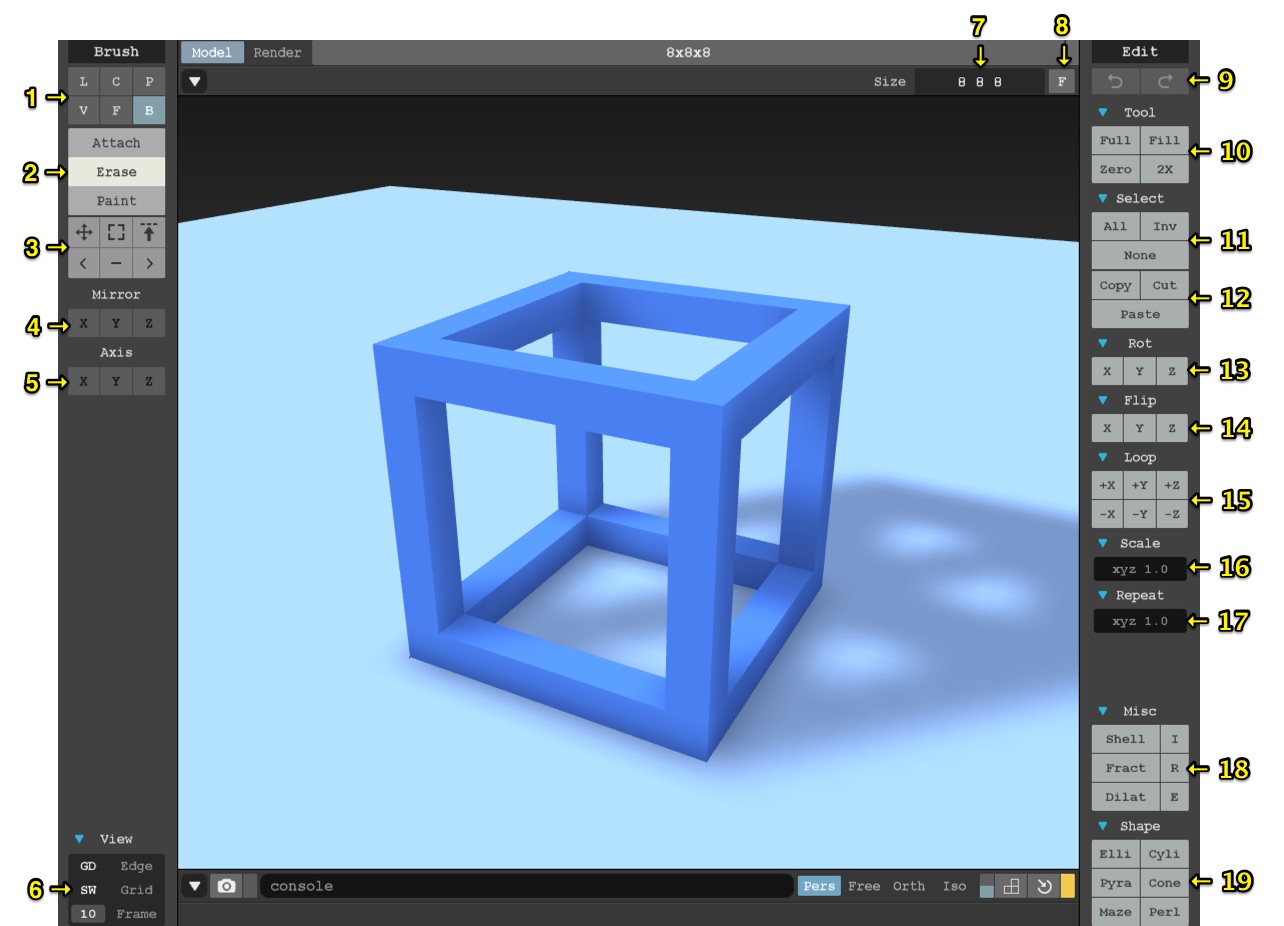 - Projection (Perspective / Free / Orthogonal / Isometric)